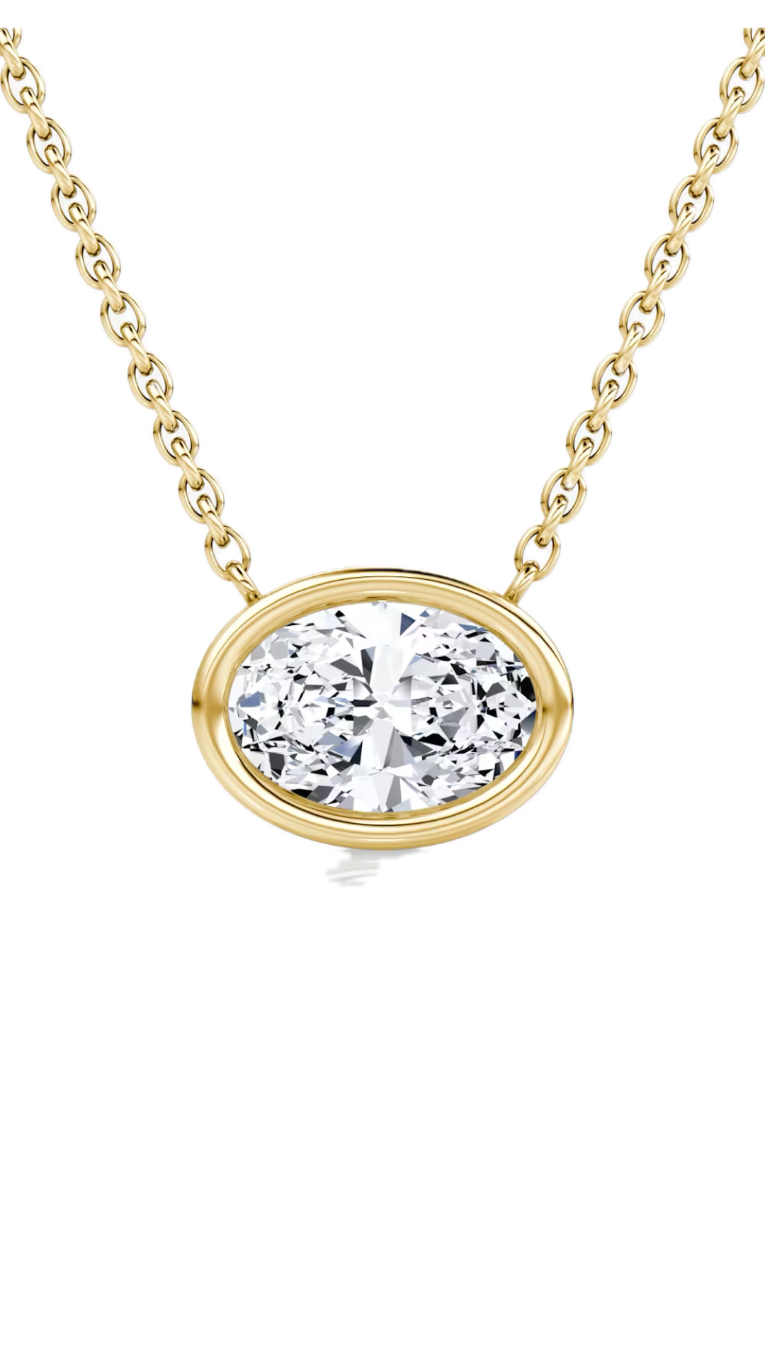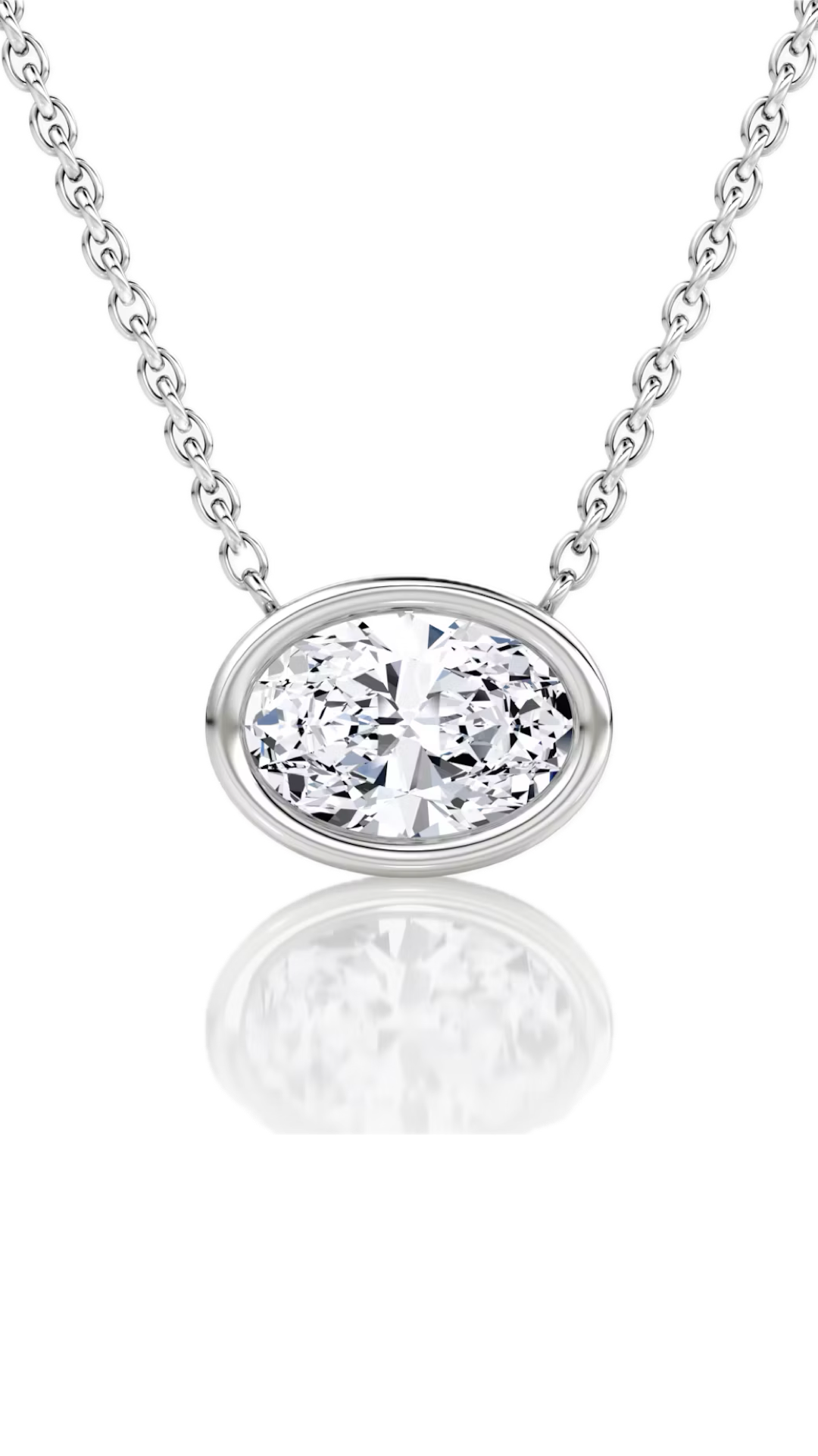 Lab Grown Bezel Set Oval East-West Diamond Solitaire Necklace