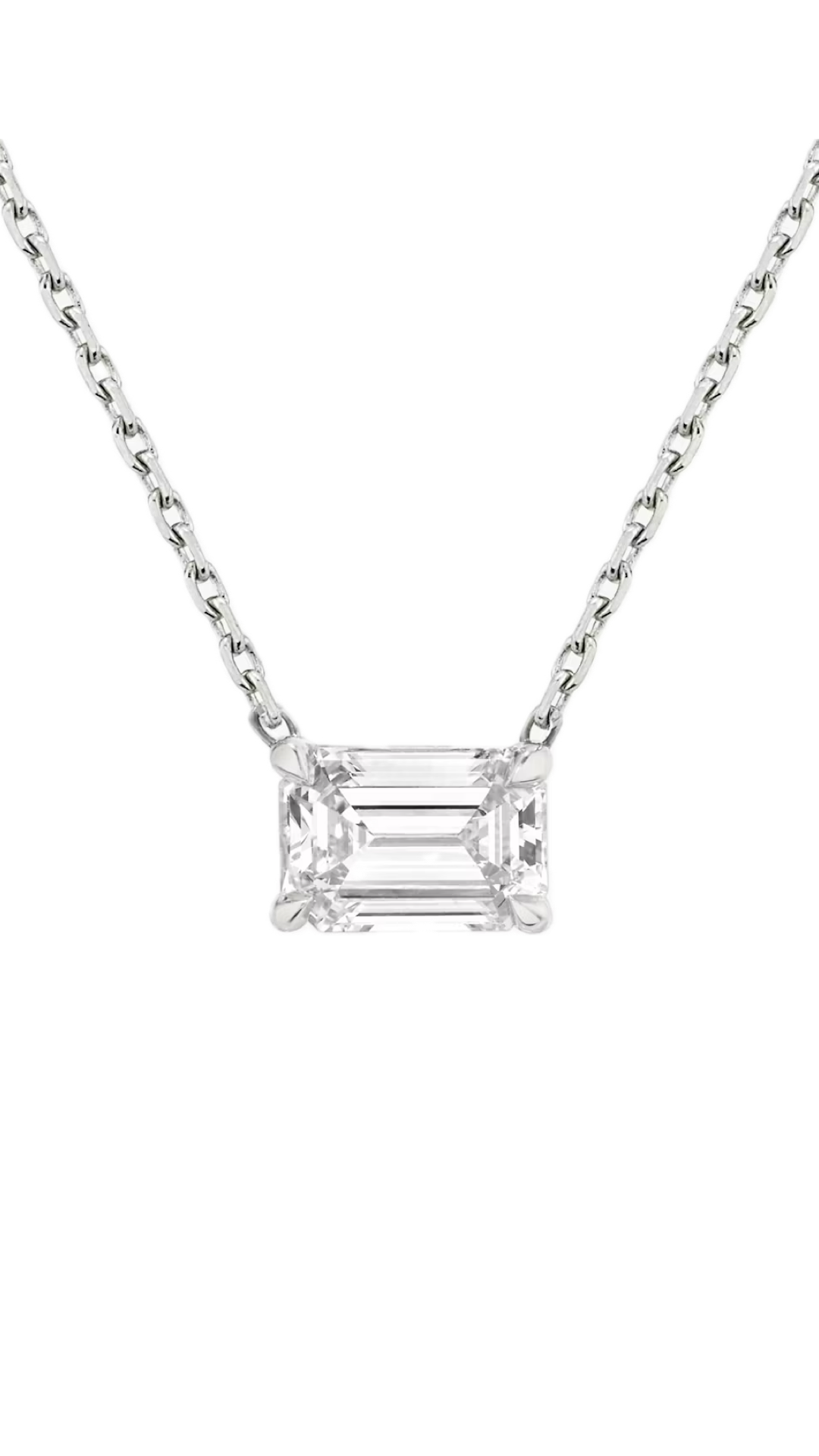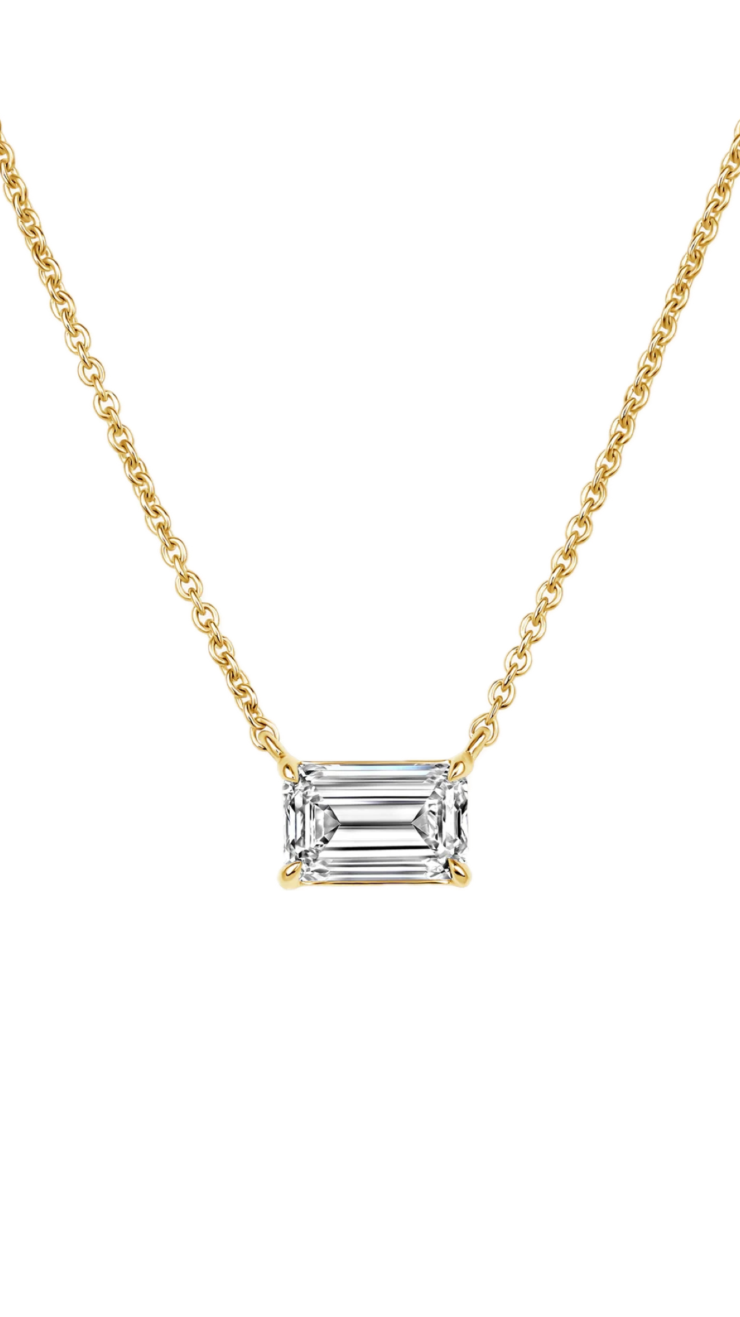 Introducing our Lab Grown Emerald East-West Diamond Solitaire Necklace — a modern twist on elegance. Select your preferred metal: 14K Yellow Gold, White Gold, or Rose Gold. Personalize your sparkle with a lab-grown emerald cut diamond, ranging from 1 to 3 carats. Redefine sophistication with a necklace that mirrors your style and values.