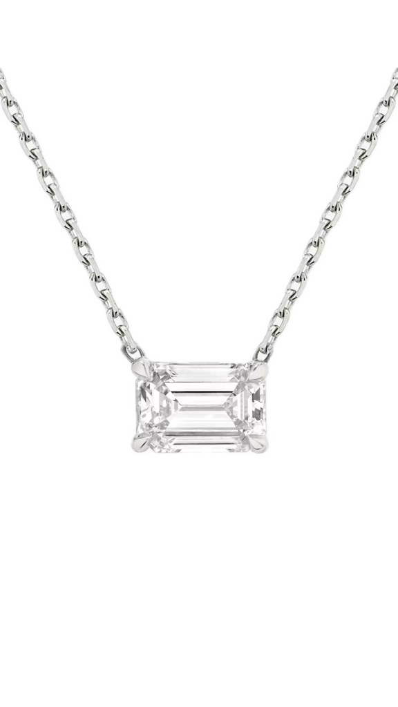 Lab Grown Emerald East-West Diamond Solitaire Necklace