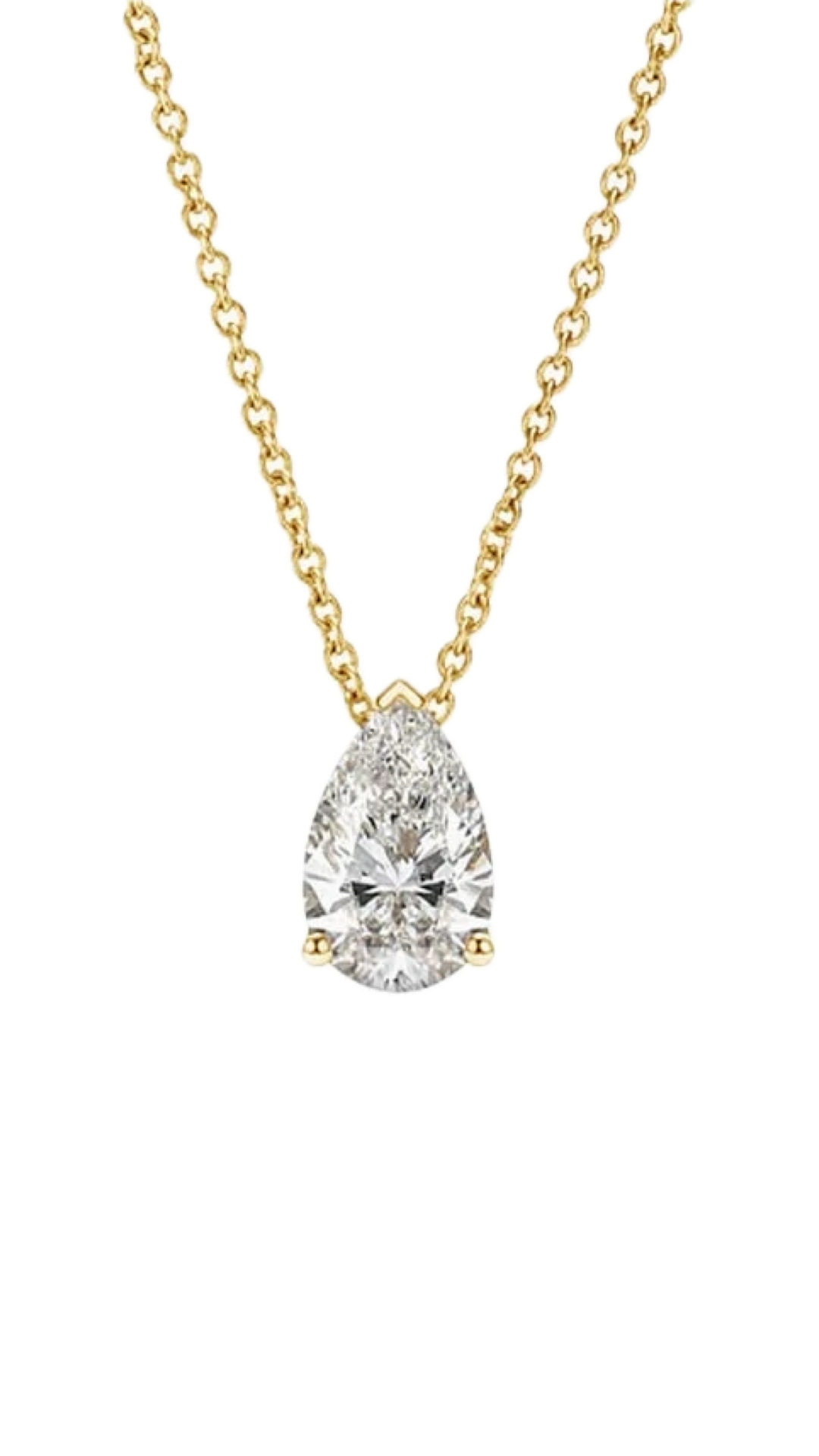 Introducing our Lab Grown Pear Diamond Solitaire Necklace — a radiant expression of elegance. Choose your preferred metal: 14K Yellow Gold, White Gold, or Rose Gold. Personalize your sparkle with a lab-grown pear diamond ranging from 1 to 3 carats. Elevate your style with a touch of sophistication and conscious luxury.