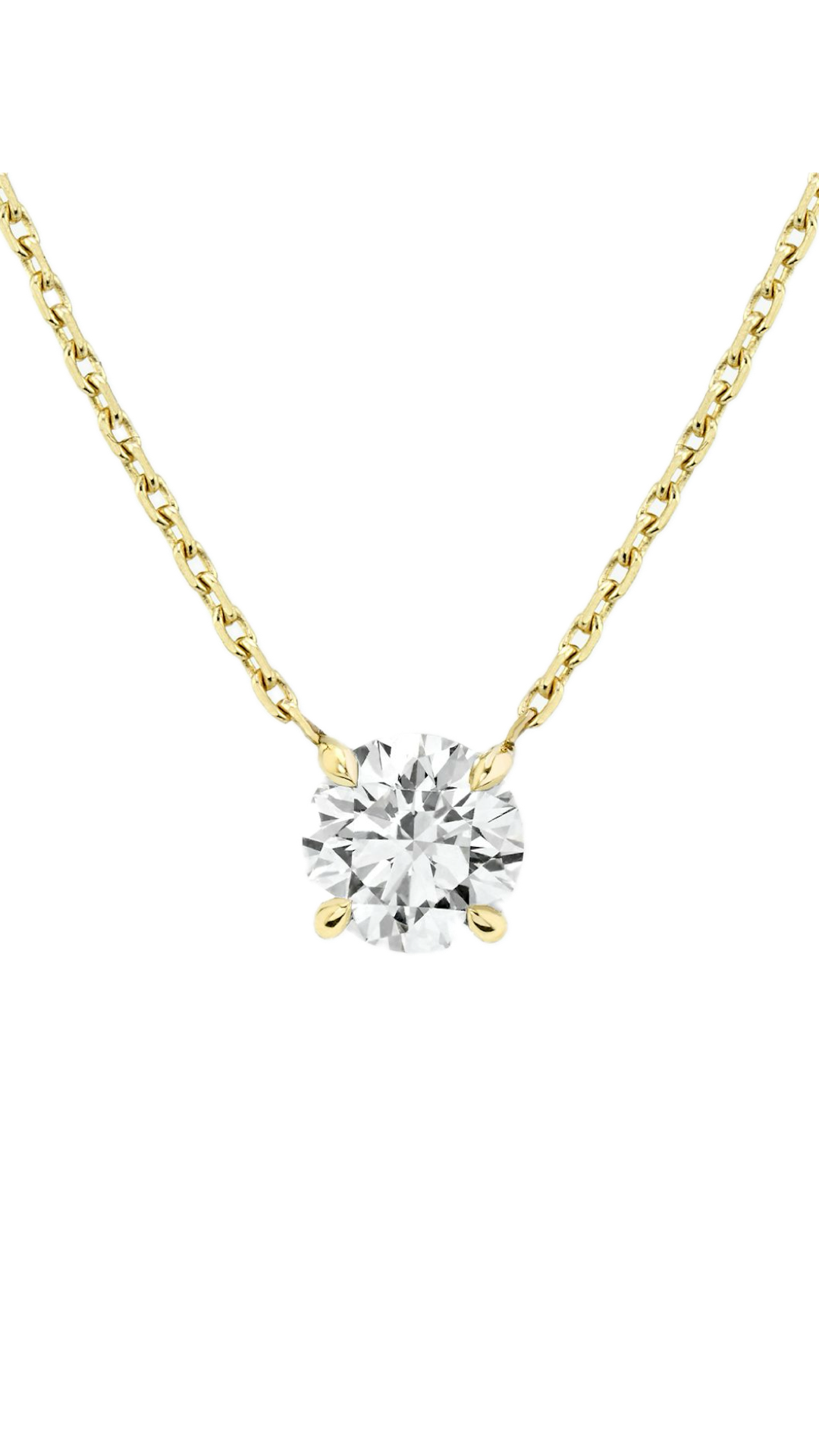Introducing our Lab Grown Round Diamond Solitaire Necklace — a timeless expression of elegance. Choose your metal preference: 14K Yellow Gold, White Gold, or Rose Gold. Personalize your sparkle with a lab-grown round diamond ranging from 1 to 3 carats. Elevate your style with conscious luxury and enduring sophistication.