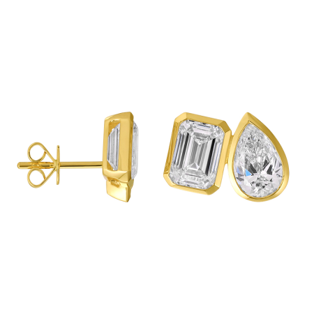 Elegant and distinctive, the Lab Diamond Bezel Toi Et Moi Stud Earrings bring a modern twist to a timeless concept of two stones coming together as one. Each earring features a beautifully matched pair of lab grown pear and emerald cut diamonds, bezel set to highlight their unique shapes and brilliant sparkle.