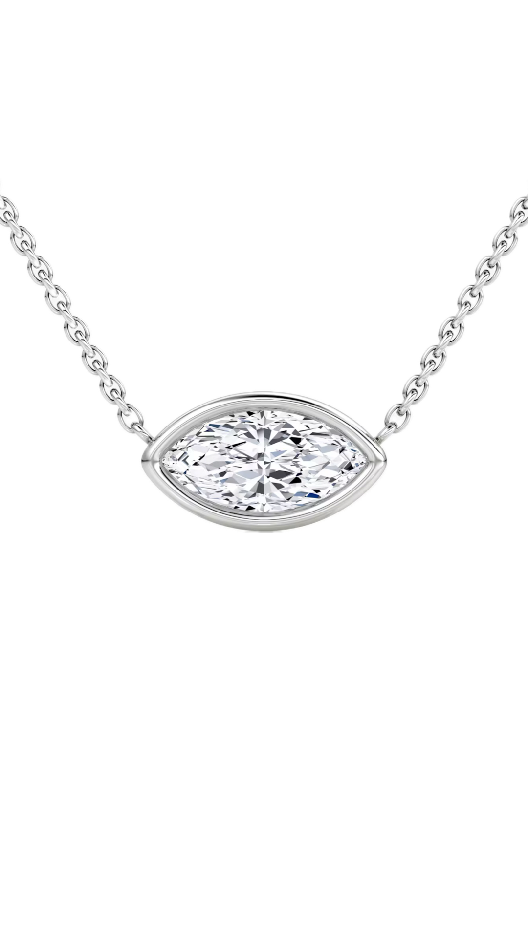 Lab Grown Bezel Set Marquise East-West Diamond Solitaire Necklace