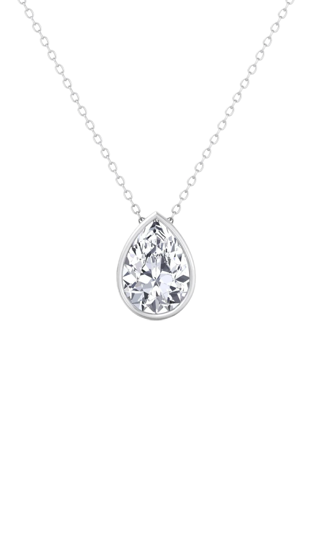 Lab Grown Bezel Set Pear Diamond Solitaire Necklace