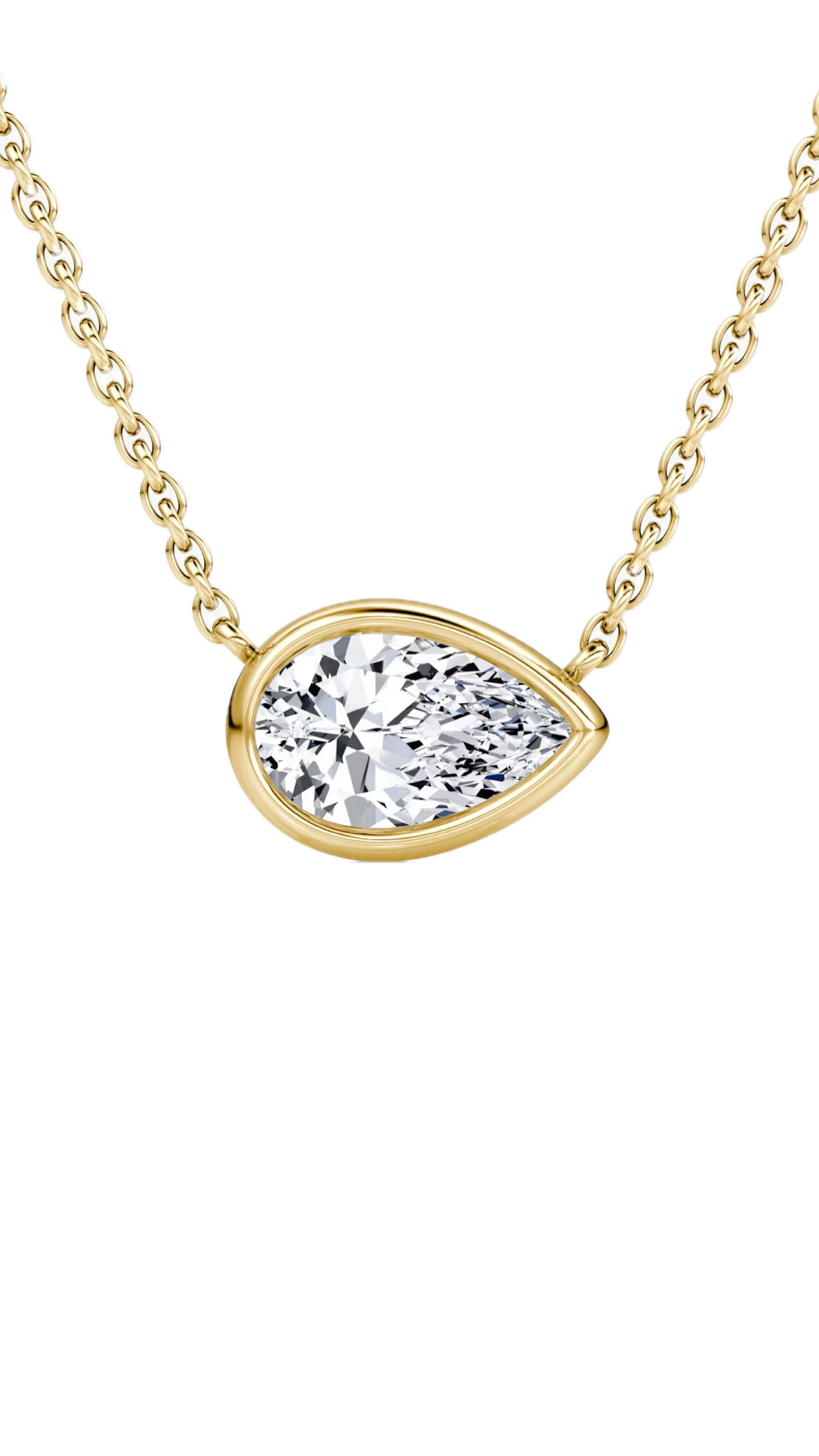 Lab Grown Bezel Set Pear East-West Diamond Solitaire Necklace