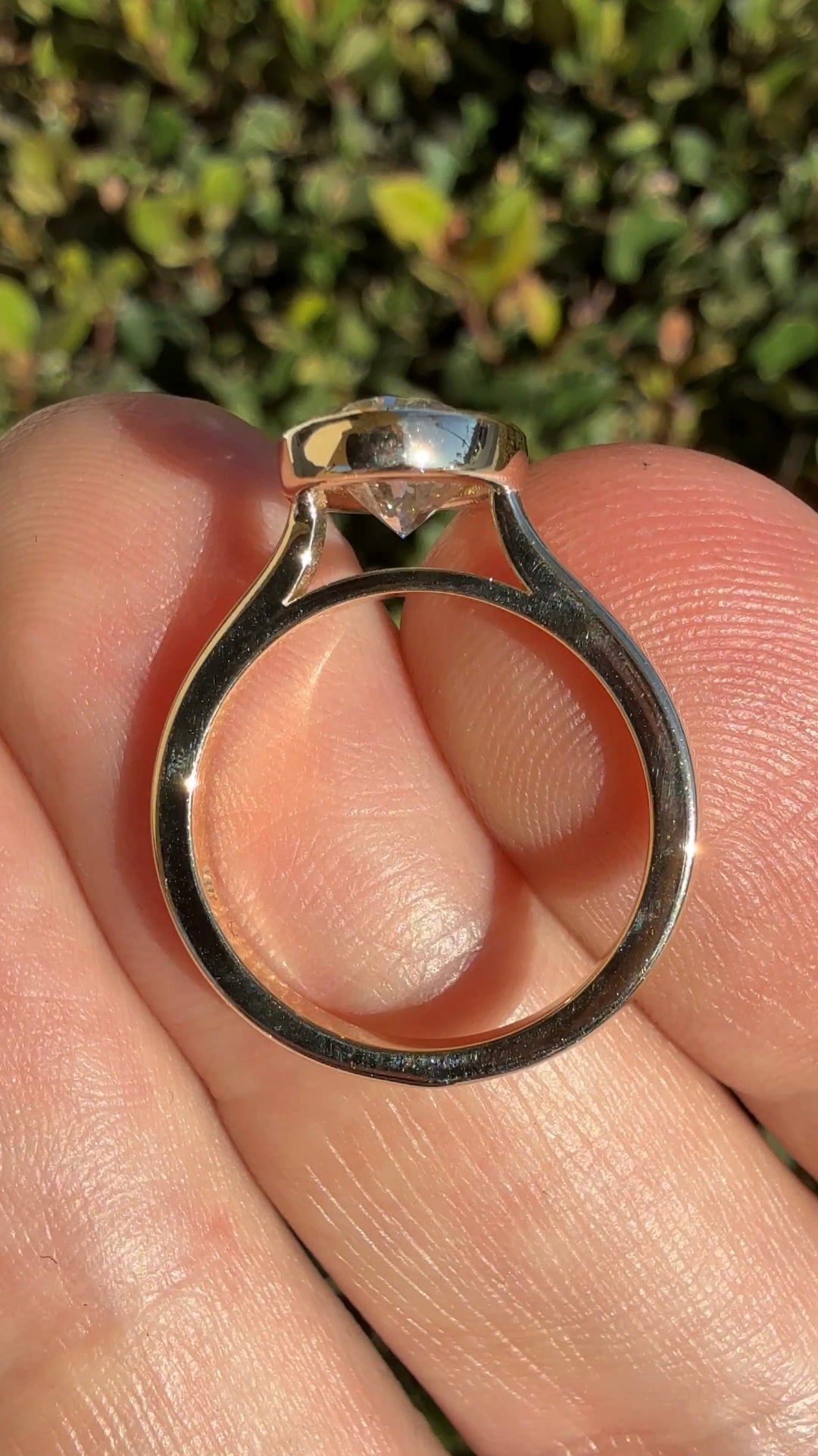 2MM Cathedral Solitaire Lab Grown Bezel Set Oval Diamond Engagement Ring