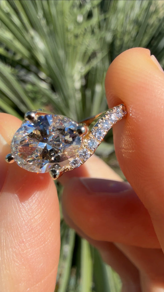 Introducing The Octavia Ring – a stunning blend of modern elegance and timeless sophistication. Featuring a 2-carat oval diamond set in an eye-catching east-west orientation, this ring redefines classic beauty. The unique curved band adds a graceful touch, with one side of the curve adorned with dazzling prong-set diamonds, while the other side boasts a sleek, high-polished 14K gold finish. Customers can select from either lab-grown or natural diamonds, and choose between 14K White, Yellow, or Rose Gold. The Octavia Ring is perfect for those seeking a statement piece that effortlessly combines sparkle and shine.
