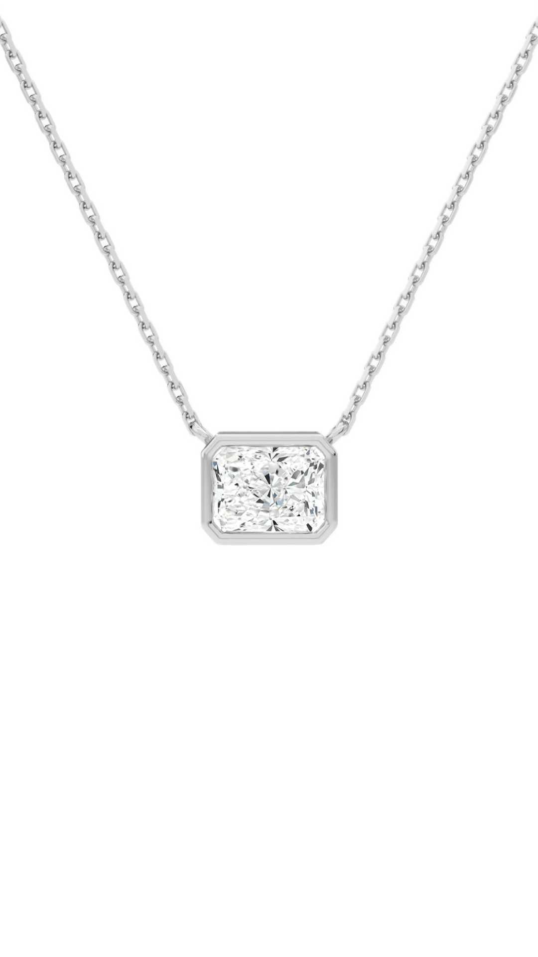 Introducing our Lab Grown Bezel Set Radiant East-West Diamond Solitaire Necklace — a modern twist on elegance. Select your preferred metal: 14K Yellow Gold or White Gold. Personalize your sparkle with a lab-grown radiant cut diamond, ranging from 1 to 3 carats. Redefine sophistication with a necklace that mirrors your style and values.